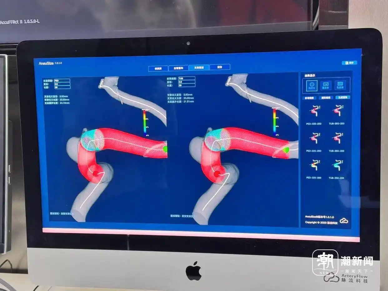 如今,另一种无创检测方式正在进入临床,只需根据患者的冠脉造影影像,一两分钟后,AI就可以算出准确的血流数据结果,检查费用降至传统有创检测的四分之一左右。